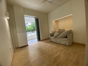 Renovated, spacious 102 sq.m. apartment located in a favorable area of Palaio Faliro. The apartment features natural gas heating and ceiling fans, and is available for rent partially furnished. It also includes internal storage spaces. It is located 250 meters from the beach and the Edem tram stop, as well as 300 meters from supermarkets and shops.