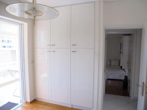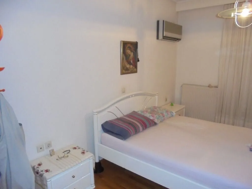 Apartment for sale in Palaio Faliro, 4th floor, with a total area of 124 sq.m. and a 20 sq.m. storage room. The apartment is renovated and includes 3 bedrooms, 1 bathroom, 1 WC, a living room with a fireplace, and a kitchen. Features include air conditioning, autonomous heating, solar water heater, security door, parking space, window screens, and balcony awnings. Located in a quiet and accessible neighborhood, close to schools, supermarkets, and public transport. Rented until the end of 2027, offering good rental yield.